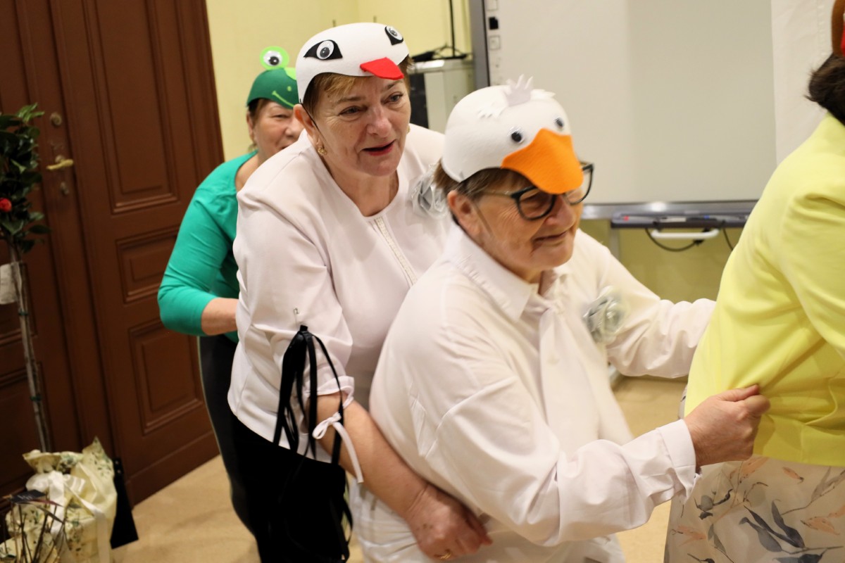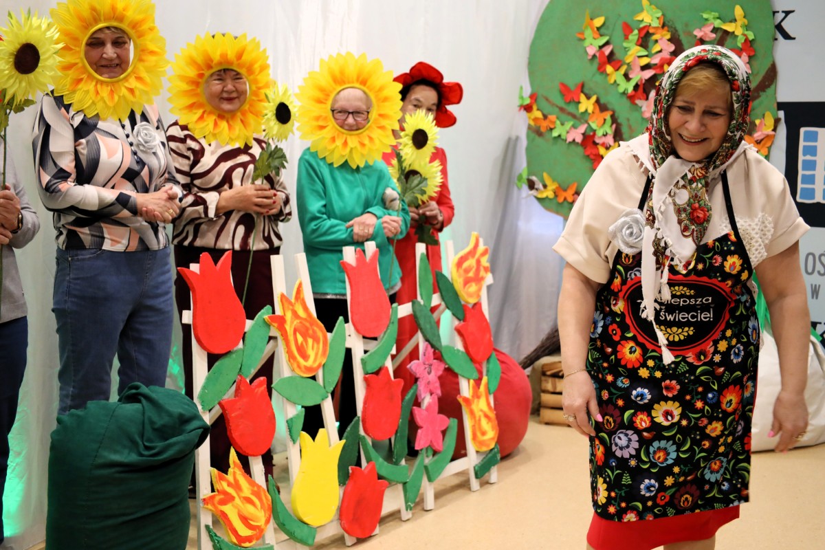 Po części oficjalnej przyszedł czas na prawdziwą ucztę artystyczną! Seniorzy zachwycili publiczność swoją interpretacją „Rzepki” Juliana Tuwima. Barwne stroje, ogromne zaangażowanie i poczucie humoru sprawiły, że sala wypełniła się śmiechem i gromkimi brawami – nasi artyści pokazali, że scena zdecydowanie do nich należy!