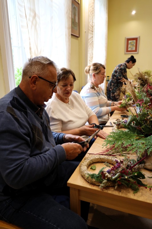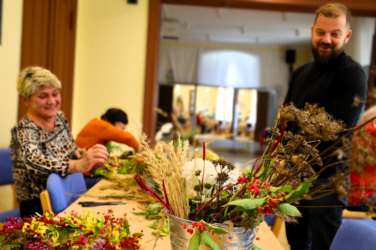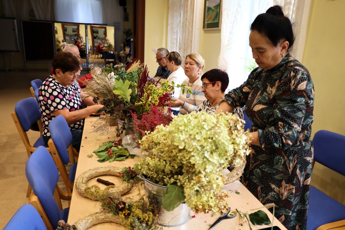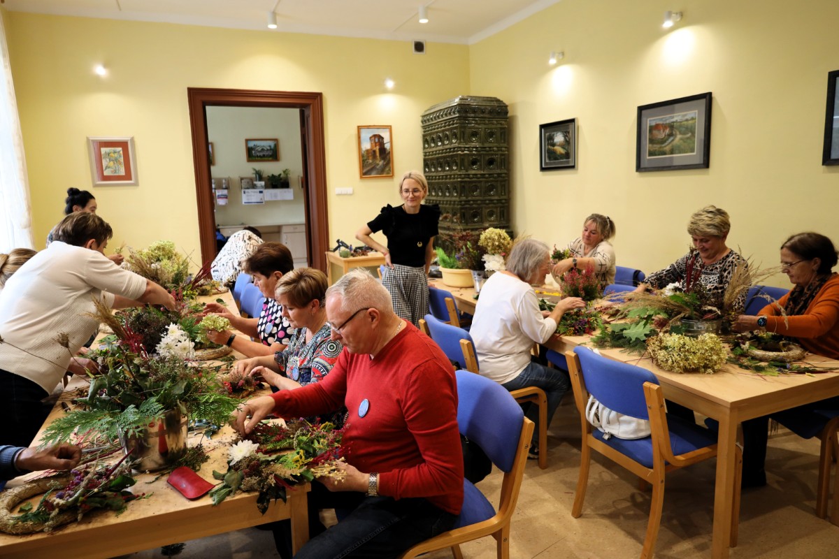 We wtorek, 14 października po raz kolejny w murach GOK-u uczestnicy Klubu Seniora w ramach projektu „Senior XXI wieku“ gościli instruktorkę Julitę Kalin, która przeprowadziła warsztaty rękodzieła. Zajęcia odbyły się w ramach obszaru kreatywność i rozwój zainteresowań – „Kreatywni seniorzy”. Uczestnicy warsztatów pobudzili swoją kreatywność i umiejętności artystyczne, w wyniku czego powstały piękne jesienne wianki. Nie zabrakło słodkiego poczęstunku, kawy, herbaty oraz wspólnych pogawędek. To był udany poranek!