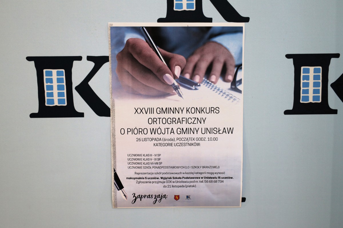 Środa, 26 listopada była pełna ortograficznych zmagań. W murach Gminnego Ośrodka Kultury w Unisławiu odbył się XXVIII Konkurs Ortograficzny o Pióro Wójta Gminy Unisław, w którym wzięło udział blisko 60 uczniów. Nagrody w poszczególnych kategoriach otrzymali: