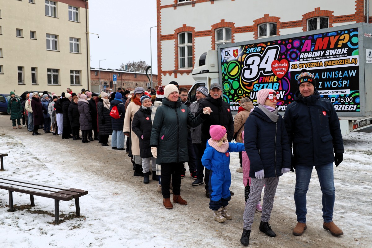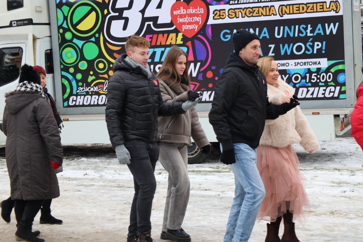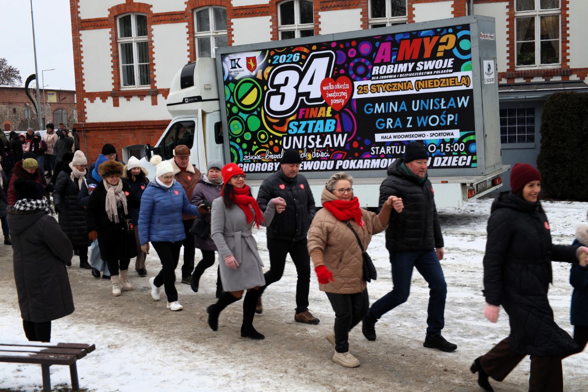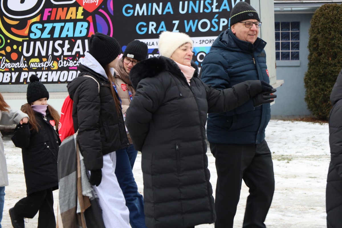 W dzień Wielkiego Finału WOŚP, gmina Unisław zmierzyła się z gminą Łubianka w tanecznym pojedynku! Bicie rekordu w tańczeniu poloneza, w którym pod uwagę brano ilość tańczących par okazało się sukcesem dla społeczności z terenu gm. Unisław. W tym roku w unisławskim parku zatańczyły 44 pary, natomiast w Łubiance 34 pary. Energia, uśmiechy i wspólna zabawa stworzyły niezapomnianą atmosferę, która idealnie wpisała się w ducha Wielkiej Orkiestry Świątecznej Pomocy.